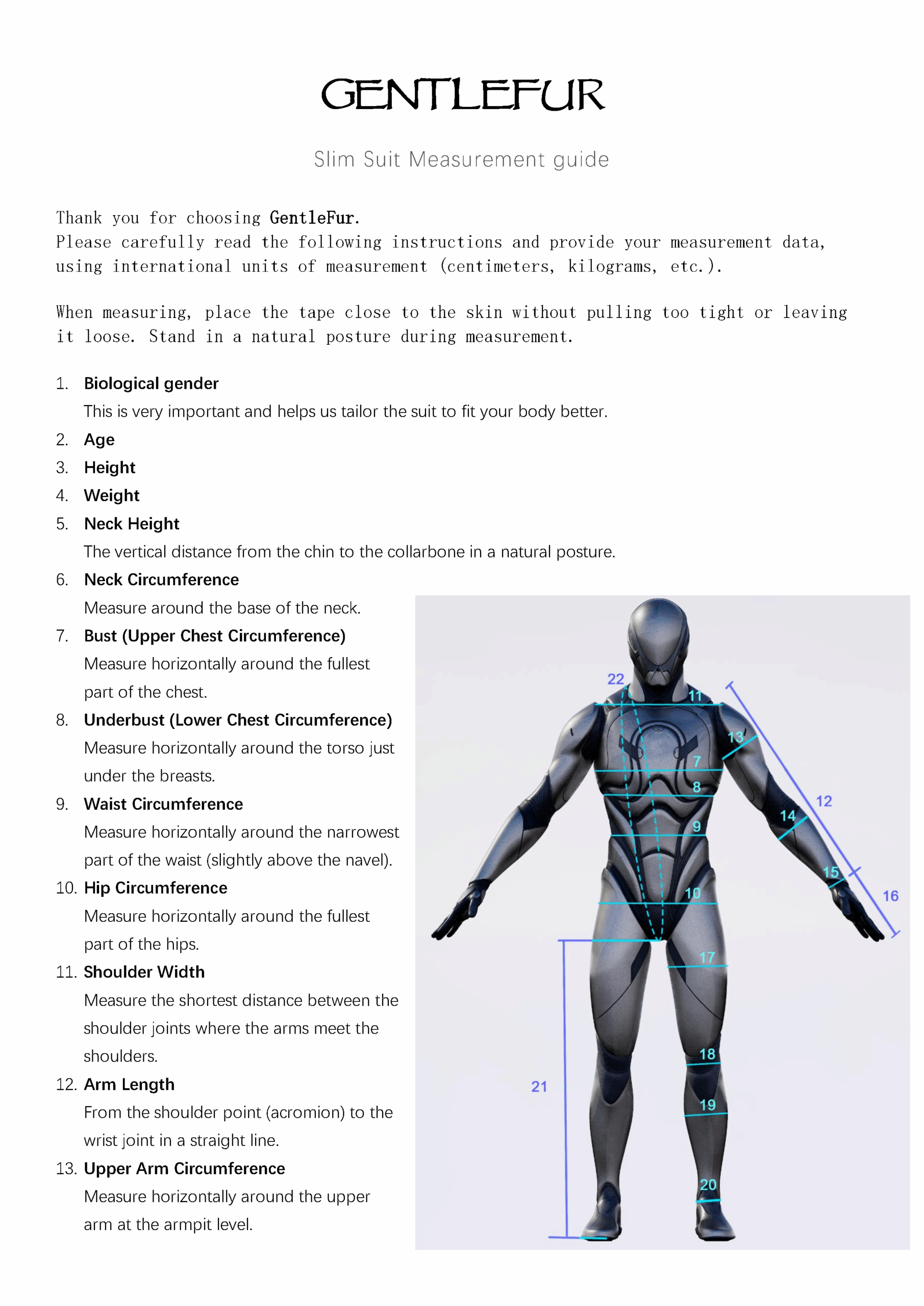 GENTLEFUR SlimSuit Measurement Guide